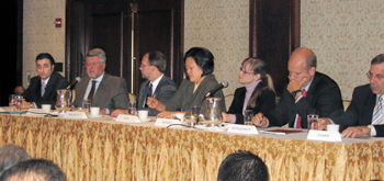 ![]() Ambassador Mallias (second from left) leads an AHEPA-sponsored discussion on the US/Greece strategic partnership on the Balkans.  |