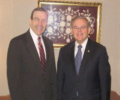 "We have been in the lead on this issue by creating awareness of Greece's qualifications as a Visa Waiver nation to key members of Congress and federal agencies. Greece certainly is well-positioned for entry based on its own merits and we believe that through its admission a lot of goodwill will be generated between all countries involved." (Photo at right: AHEPA Pres. James with Senator Menendez)  |
