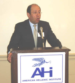 For more information about the American Hellenic Institute in Washington, D.C., contact Georgia Economou, Director of Public Relations for AHI, at (202) 785-8430 or at georgia@ahiworld.org, or visit the groups' website at http://www.ahiworld.org. AHI was founded in 1974 following Turkey's illegal invasion and occupation of 37.3% of Cyprus. It is a membership-based organization with members throughout the nation. AHI's core mission is to promote American values and the rule of law in U.S. foreign policy and to strengthen relations between the U.S. and Greece and Cyprus as being in the best interests of the United States. It conducts an active program with Congress in espousing and supporting legislation designed to promote American interests in Southeast Europe and the Eastern Mediterranean and is registered with the Congress under the Lobbying Act. The AHI Foundation is the first think-tank devoted exclusively to the study of the issues confronting the Greek American community. This organization sponsors conferences, seminars and publishes books and other materials on the issues. HCS maintains an extensive archives for AHI articles and press releases which visitors may browse under the American Hellenic Institute Releases section of the archives at http://www.helleniccomserve.com/contents.html.  |