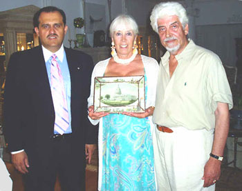 Washington, DC  In the month of June, American Hellenic Institute (AHI) members hosted two fundraising receptions in support of AHI. On June 18, 2005, AHI members Nicholas and Irene Kyriakopoulos graciously opened their home in Potomac, Maryland for a reception in support of the American Hellenic Institute. On June 25, 2005, AHI Chicago-area members and friends attended a similar reception. The event was hosted at the home of AHI Advisory Committee Member and long time supporter Ted Spyropoulos and his wife Erika. "I especially want to thank Nicholas and Irene Kyriakopoulos as well as Ted and Erika Spyropoulos for kindly hosting these events and for their longtime commitment and support to the American Hellenic Institute," said AHI Executive Director Nick Larigakis. Attached please find a photograph from the AHI Chicago-area fundraiser of AHI Executive Director Nick Larigakis with Ted and Erika Spyropoulos.  |