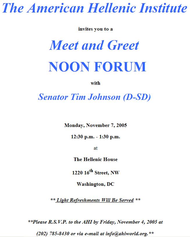 For more information about the American Hellenic Institute in Washington, D.C., contact Georgia Economou, Director of Public Relations for AHI, at (202) 785-8430 or at georgia@ahiworld.org, or visit the groups' website at http://www.ahiworld.org. AHI was founded in 1974 following Turkey's illegal invasion and occupation of 37.3% of Cyprus. It is a membership-based organization with members throughout the nation. AHI's core mission is to promote American values and the rule of law in U.S. foreign policy and to strengthen relations between the U.S. and Greece and Cyprus as being in the best interests of the United States. It conducts an active program with Congress in espousing and supporting legislation designed to promote American interests in Southeast Europe and the Eastern Mediterranean and is registered with the Congress under the Lobbying Act. The AHI Foundation is the first think-tank devoted exclusively to the study of the issues confronting the Greek American community. This organization sponsors conferences, seminars and publishes books and other materials on the issues. HCS maintains an extensive archives for AHI articles and press releases which visitors may browse under the American Hellenic Institute Releases section of the archives at http://www.helleniccomserve.com/contents.html.  |