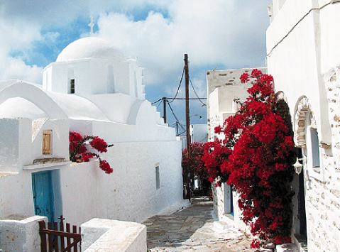 | the monks is stationed there to explain a little about the monastery's history. Outside is a terrace that can make you feel quite dizzy if you lean over the edge and look down into the waters of the Aegean, rather a long way below. Next stop is a reception room, the walls hung with portraits of former monks (and military leaders), where visitors are given a glass of the local honey and raki liqueur and a loukoumi. Then comes the descent. And since there is only that one narrow staircase leading up from the bottom level, there can be some waiting time. The monk's minder has to act like a cuckoo clock. Out he pops to the top of the stairs to give the same old message, politely, to yet another incorrectly dressed visitor, and back he comes into the waiting room, slapping his forehead and rolling his eyes to vent his frustration. Out he pops, back he comes. But now, as we wait, he pops out for a long time. An unholy argument is in progress in Greek. He is facing up to some irate women who have just exhausted themselves climbing the steps from their tour bus and have no intention of not seeing the monastery. Back he comes, at last, and beckons for us to go down, evidently still unaware of just what he is up against. We descend to find the stairs blocked and we don't know where to look. Four steps below us a woman has removed her trousers and her husband (presumably) is removing his shirt so she can wrap it round her thighs and pass it off as a skirt. We edge past and leave them to it. Amorgos' Hora is one of the best-preserved capitals in the Cyclades (thanks in large part, we are told, to Lily Marangou's efforts) and one of the pleasures of being on the island is to get lost in its quiet alleys, designed with foresight not just to keep out pirates but cars and motorbikes as well. Originally built as a retreat from the men of the black sails, the medieval part of the town centres round the Kastro rock with the improbable church, a warren of arches and passages and thick stone walls. Not far below is Loza, the main square, its cafes shaded from the morning sun by a large eucalyptus tree, the traditional blues and whites interrupted by the surprise of a green door or a wall of purple bougainvillea. And from there the streets spread out in a maze of steps and corridors full of barrel-vaulted churches and houses with iron balustrades and whitewashed walls that seem to bubble from all the little indentations that mark this style of Cycladic building. Are these purely decorative or do they act as a kind of cooling system? And for how long have they been 'traditional'? Lily would know. One day, we walk from Hora via Hozoviotissa Monastery to Aegiali. It looks impressive on the map, a route that probably covers half the island and follows its spine along the narrowest section. And it is impressive, not least because you walk beneath the limestone ridge that runs down from Mount Prophet Elijah (698m) and cross over from one side of the island to the other. This is the best way to get an idea of how steep and narrow this old island is and why, in antiquity, Aegiali must have seemed so independent of the other city states - Arkesini and Minoa. It is quite a trek, the path winding and uneven. The sun is already going back down into the sea when we meet a couple of cheerful goatherds. Where have you come from, they ask. Hora. How long did it take? Oh, about an hour, we reply. They grin. In that case, it'll only take you another ten minutes to get to Aegiali! Off they go, chuckling. It will take us a good hour-and-a-half. Twilight restores the richness of colour to the land and sharpens the contours of the Little Cyclades, the islands that lie to our north-west across a pool of calm water. On evenings like this, it is easy to forget how treacherous the sea can be and what a long and turbulent history these empty hills have witnessed. We leave the path and go cross country towards the distant church of St Mamas and from there into tidy Pano Potamos which leads down, via many steps, into the charming little port of Aegiali. The second time we have been here. And the second time at night. We really ought to see it in daylight. Next time. Because with one hour left on the island, over ouzo and biscuits, Lily Marangou has extracted a promise that there will be a next time. It is very important to visit the Old Tower at Arkesini, she repeats, when we try and fail once again to get in a word about our own expertise in latrines. "So what happened there?" we ask. "Everything," says Lily, "though we don't know yet exactly what." How to get there  |