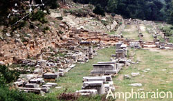 Hundreds of years later, the Greeks who held great store by oracles erected several shrines to the legendary seer-hero, and by far the most famous was the one near Oropos, from whose spring he was said to have reappeared as a god. Today there are few traces of that very ancient port city at the modern ferry landing of Skala Oropou, but even in Pausanias’s time, there was nothing “great to record.” Which was probably why the Oropiotes were so proud of their one attraction, the Amphiaraion, a big money maker. Its prestige and profits surely whetted Athenian appetites for acquisition, for both town and sanctuary were coveted by Athens and Boeotia, who struggled over them for generations. The shrine was founded in the late 5th century BC and already by the 4th century it was a thriving spa/religious center with a temple, a long colonnade, baths, hostels, shops and, of course, the theater. Now as then a stream runs through it, separating the show-case buildings to the left of the entrance from the smaller residential and commercial ones on the right. The jumbled foundations of the latter have only recently been disentangled from the thick woods and underbrush that concealed them in the days when I used to make my pilgrimages. In fact, we had no inkling of their presence then, but loved to scramble up the opposite bank of the stream to admire the state of the art technology of the Hellenistic era  a water clock. It’s a little jewel. A rectangular ‘box’ about 2 meters deep set inside a larger square equipped with a small flight of stairs, it is a perfect example of the stone cutter’s art, as well as being a timepiece more reliable than a sundial. Perhaps it was used to schedule cures, sacrifices or events at the games. Time in those days was refreshingly imprecise, with no onus attached to not being ‘on time’ or ‘in’ it. For about six hundred years the sanctuary was a favourite recourse for people seeking a solution to a problem or relief from an illness. The procedure was simple. After paying the entrance fee, the patient sacrificed a ram on the altar, which Pausanias says was divided up into sections, each sacred to a diverse group of deities, ranging from Jason and Hercules, to Zeus, Apollo, Athena and Aphrodite, plus Pan, the nymphs and two other river gods in addition to Amphiaraos. What a luxury to be able to take one’s pick. The pilgrim, wrapping himself up in the fleece of the ram, would then go to sleep, hoping for a portentous dream, in the colonnade, which was lined with marble benches. After interpretation of the dream and any further treatment, which usually included baths in the miraculous waters, it was customary to thank the gods by throwing gold and silver coins into the stream. Needless to say, the priests encouraged this practice; they regularly fished them out and melted them into material for ex votos which they could sell at a good profit. The altar must have resembled the icon of the Virgin Mary in Tinos, so bedecked was it with symbolic images of children or afflicted body parts  legs, arms, eyes, breasts. Many such offerings have been found, made of both clay and precious metals. Like many religious centers of the ancient world, the Amphiaraion celebrated festivals in the form of games, the Lesser Games annually, and the Greater Games every five years. It is hard to imagine the secluded spot ringing with cries of athletes, actors, dancers, musicians, poets, spectators, and the inevitable hawkers of souvenirs and refreshments. The space between the stream and the stoa, where the spectators sat, barely seems large enough to have served as a stadium, and the wrestling, boxing, pentathlon and other competitions would have had to have been squeezed in there too. At least they did not try to hold the chariot races in the sanctuary proper, the hippodrome was located somewhere on the hill above. After the sports events, the theater would fill up for plays and poetry readings. It must have been bursting to capacity since it only held 300 seats, plus five beautifully carved marble thrones placed in the orchestra for VIPs or priests. By the 1st century BC these would have been reserved for Roman dignitaries. The Oropiotes did not welcome the new world order, but because etiquette demanded that they erect statues to their new rulers at great expense, they resorted to recycling. To the left of the entrance to the sanctuary is a row of more than thirty pedestals for statues, on How to get there To get to Amphiaraion, take the national road north, turn right at Malakassa for Markopoulo, and right again at the sign for Sanctuary of Amphiaraos (3 km) and Kalamos. The KTEL buses for Markopoulo/Kalamos leave from Mavrommateon Street near the Archaelogical Museum in Athens (tel: 210 8213202), but do not pass the site, so be prepared for a 4 km walk along a tree-lined road, parts of which are disagreeably decorated with litter and rubble. Where to eat The peaceful, usually empty site is ideal for picnicking but if you’d prefer a taverna lunch, backtrack to the Markopoulo road and head down to the village. Where the road widens is a cluster of shops, including D. Tsakona’s psistaria, where lambchops will be grilling on the coals. The food is the classic bare minimum  meat, salad, horta, feta, and genuine fried potatoes  but it’s well prepared, the wine is good and it’s very cheap. There are several fish tavernas at Skala Oropos and Agii Apostoli, but for a less hectic ambience, drive north along the coast to Dilessi. This is by far the most attractive of the seaside summer colonies, with a handful of traditional fish tavernas and a landscaped, car-free promenade on the water’s edge. Note Sadly, the fire of 2000 ravaged the trees on the upper hillsides, while the heavy snow of January 2002 caused further damage, uprooting and breaking pines and olives. But apart from losing two large pines, the sanctuary itself remains unscathed. The Santuary is open daily fr
