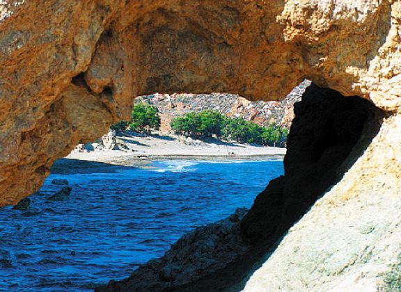 | Nick and his girlfriend Barbara have decided they must be from Jethro Tull. They look the right age and we know Jethro Tull's Anderson, like our grey-pigtailed Anderson, is from Scotland. We think the shorter man might be guitarist Martin Barre, even though that isn't exactly a Scottish name and nobody is sure if it's the right name anyway. Overall, our combined knowledge of Jethro Tull is pretty skimpy. But the fact that Barre plays for a band has already been teased out of him, as well as the little nugget that he always takes his guitar with him in case he feels inspired to write a song. And by the way, they did not bring the guitars to perform... Yes, of course, they must be sick of being asked to do that when they're on holiday. But where is Anderson's famous flute, and why has he never yet exercised standing on one leg? Ask them, I suggest to Barbara, when they were last at the Irodion in Athens. I remember Jethro Tull played there a couple of years ago. Nick tells Anderson his drawing has promise. And then, taking a plain sheet of paper, he shows him how he should really do it. When you draw a straight line, he explains, don't look at it, look just above it and your mind will draw it straight for you. Cut out all that sea, put the islets where you want them, give them a shape that works and now put something big in the foreground for perspective. The sketch, in a matter of minutes and with the lightest of touches, has grown into something we all instantly recognise. He doesn't give Ftena wings. That night, a giant red moon comes up over the sea. I catch Anderson's eye across To Steki taverna where we all seem to have ended up at different tables. "Bad moon rising..." he quotes. Is that from Aqualung? I wonder. "Creedence Clearwater Revival, " he shouts across, before I have time to ask. Or, looked at another way, it could be Mercury crossing the sun. Heading east Outside the Hora, there is only one way you can really go which is, of course, east. Mt Kalamos beckons. There is a new road, but much better is to walk along a footpath that skirts the coast and ducks in and out of fields that represent Anafi's only cultivated land. On the way, you pass or drop down to maybe seven or eight sandy beaches, a couple with tavernas and a few with tamarisk trees. All deserted and picturesque. After about 4km, half-way along, you reach what was the island's centre in Hellenistic times - Katelimatsa.  |
