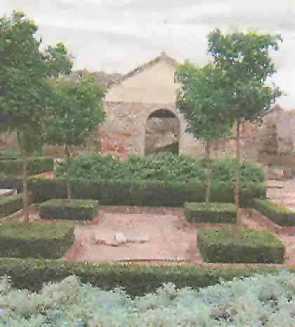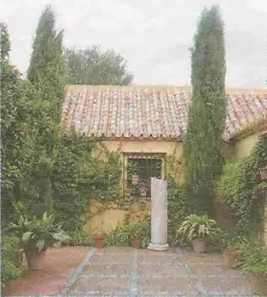The patio garden was central to Moorish family life, and still is today to the Andalusians. Here a large proportion of family living took place, especially in the evenings, though guests were not usually entertained here - the emphasis was very much on family privacy. The meaning of patio here is something more than the modern sense of a paved outdoor area adjoining a house. The Spanish patio is a roofless inner courtyard - it was, and is, regarded as an outdoor room forming part of the total building concept. High walls of white stuccoed masonry cast a welcome shadow, against which green foliage gave the predominant colour, followed by the purple-blue of the iris (a colour often taken up in the tiles). Accessories such as benches, pots and fountains were placed carefully for maximum effect paths as well as steps were also faced with tiles, bricks, coloured earth or smooth pebbles laid in geometric fashion and ranging in colour from deep purple through to grey and white. From the street only an occasionally wrought iron gateway broke the unadorned facade from where a protected but inviting glimpse of a patio with its small pool, fountain and vegetation were revealed Many such quiet and cloistered patio gardens, shaded by orange and cypress trees may still be found in Andalusia nowadays. Orange trees feature widely - they go back to the earliest gardens - often planted in rows, sometimes. espaliered; in later and larger gardens the maze became popular and was formed of clipped box, cypress, myrtle, juniper or holly, preference being given to aromatic plants. Date palms, pomegranates and grapevines were also planted. Canary palms or pines were often placed in the centre of a courtyard to afford shade, the square or circular surface area around the trunk filled with groundcover such as violets. Nowadays Canary palms are still widely used as well as wild olives, loquat and pomegranate. Flowers were usually chosen for evening fragrance, so white blooms such as jasmine and lilies predominated. Today Cestrum parqui is added to this trio for heady night-time perfume. Myrtle, narcissus, roses, marjoram, carnations and poppies are among flowers recorded in the Arab Moorish gardens, and many are still used today. Acanthus, Qivia and Zimtedeischia all feature significantly - architectural plants suited to the formal style.  |