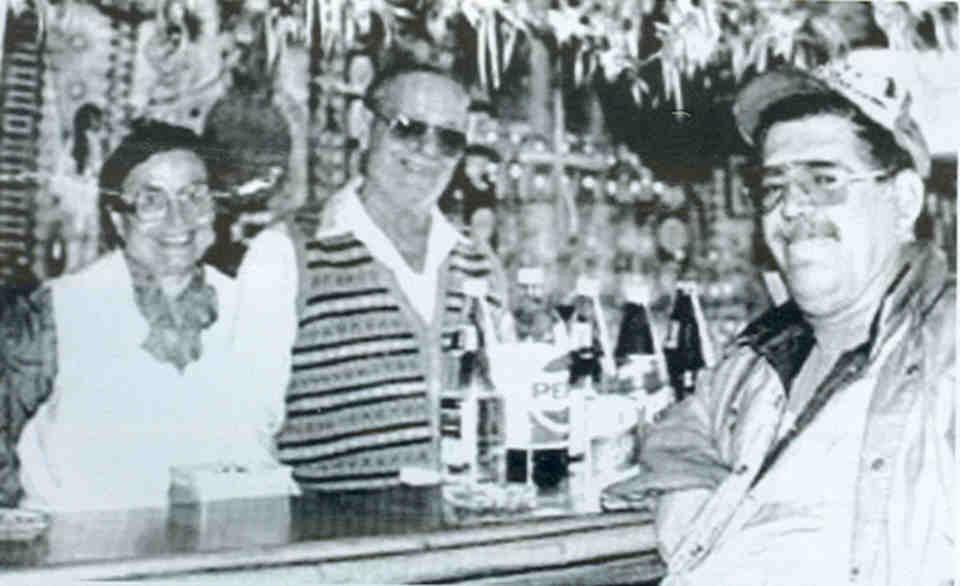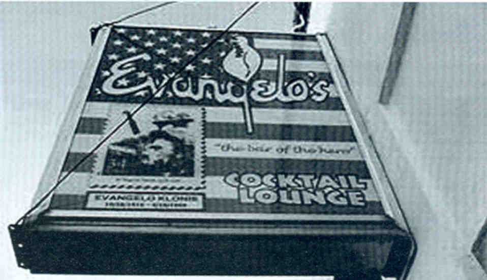 ![]() Angelo S.Klonis and his wife Angeliki ("Kiki") with an unidentified patron in their Santa Fe NM. bar, "Evangelo's" around 1980  |