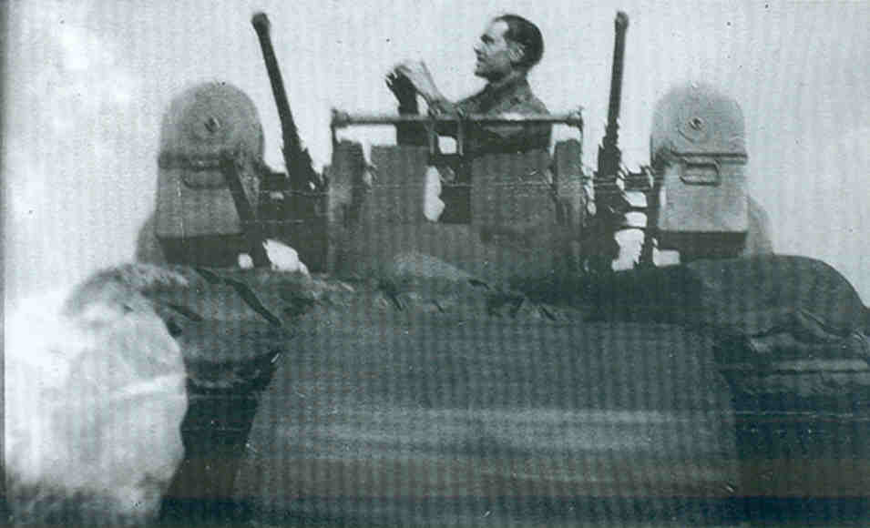 ![]() Nick Klonis on top of an anti-craft machine gun  |