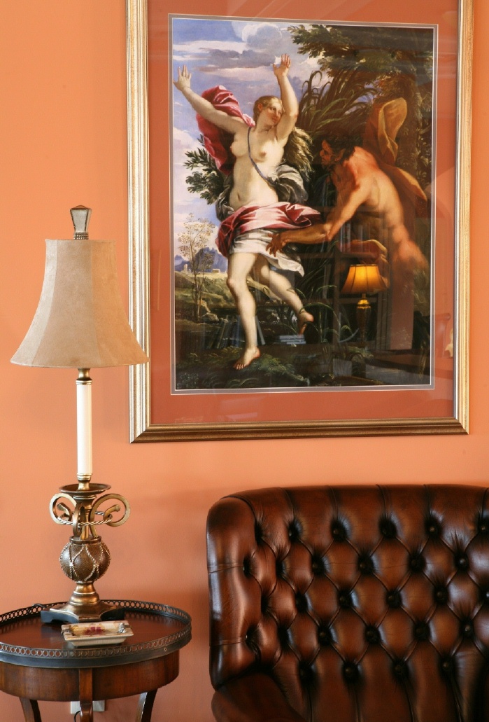 ![]() Oil painting of a nymph fleeing a Greek God.  |