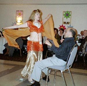 (HCS)--The successful birthday party must be a surprise, above all, a complete shock for the honoree. No warning, no hints, no suspicions of any secret activities by the planners. Invitations must be sent our surrepticiously, either by email, with all Internet traces removed so that the honoree won't stumble upon the e-trail, or by postal mail from someone else's home to hide the paper invitations. Musicians and bellydancers must be phoned from someone else's home. Decorations have to be made by friends (or in Helen's case, by volunteer grade-school students). Family photos have to be gathered when the honoree is out of the house. But most of all, there must be absolutely no trace of a Power Point roast of the honoree until the time of showing.  |