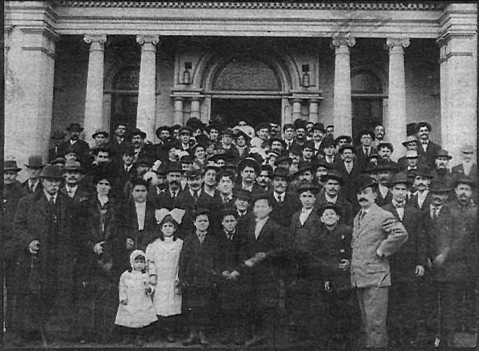 Then came the earthquake. Two years after it went up, that first Greek church building crumbled along with the myriad other structures in San Francisco. Kosta relates the community's valiant efforts to recuperate: "Father Tsapralis rescued the baptismal bowl and as many other things as he could from the church and sent them to my house, where, afterward, until a new church was built, we did the services at my house. In a week I had my house full of Greeks, known or otherwise, about sixty people in all. I took the stove out on the street and we cooked for everybody."  |