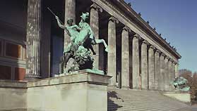 | The Collection of Classical Antiquities Museum contains Greek and Roman works, not only architectural remains, sculptures and vases, inscriptions and mosaics, but also bronzes and jewellery. It displays holdings in two locations: the Pergamon Museum and the main floor of the Altes Museum, Museumsinsel Berlin-Mitte. With mor than 850,000 visitors annually, the Pergamon Museum ranks among the most popular buildings of the state museums. Its main attraction is the Pergamon Altar (2nd century BC). The frieze depicting the battle between the Gods and Giants is regarded as a masterpiece of Hellenistic art. The next room to the south contains the market Gate of Miletus, an outstanding example of Roman architecture. |
