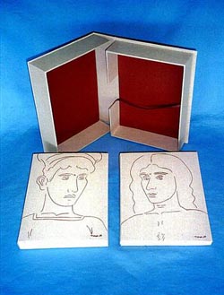Tsarouchis, the Face of Modern Greece New Sylvester & Orphanos Publication A folio in celebration of Greece's greatest modern artist, Yannis Tsarouchis. With tributes by authors Odysseus Elytis, james Merrill, Reynolds Price, Yannis Ritsos, Sir Stephen Spender, and John Updike; artists Paul Cadmus, Alekos Fassianos, and David Hockney; cinema directors Michael Cacoyannis, Constantine Cost-Gavras, and Jules Dassin; composers Manos Hatjidakis, Mikis Theodorakis, Vangelis, and Stavros Xarhakos; photographers Henri Cartier-Bresson, Horst P. Horst, and Constantine Manos; fashion designer James Galanos; hotelier Dimitris Tsitouras, and the publishers Ralph Sylvester and Stathis Orphanos. The preface is by Melina Mercouri, the former Minister of Culture of Greece and the afterword is by Yannis Tsarouchis. Printed by letterpress on heavyweight somerset paper in a signed-limted edition of 424 copies, the text, along with 36 large color plates, are laid into an elaborate portfolio designed by the artist, 16 x 13 inches. All copies of this edition have already been signed by each of the contributors, many of whom have worked with Yannis Tsarouchis in film, stage, and the book arts, while others are owners or admirers of his work. |