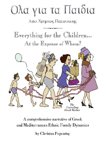 Everything for the Children delves into familial psychological dynamics. Papoutsy includes fourteen chapters designed for general readers, introducing relevant archetypes and psychological theories. Narcissicism figures prominently, with several chapters devoted to elucidation and recognition of this trait. Chapter Three contains a Narcissicistic Personality Inventory self-test for readers, for example. Fathers also receive treatment in this work. Papoutsy writes about "Mentors and Fathers" and "Male Inhibitions and Mentoring" in Chapters Seven and Eight, balancing the earlier sections on mothers. Completing his writings on family interactions are subsequent chapters on "Family Inheritance: DNA-Tradition-Property," "Faith, Family and Parents," and "Fathers, Sons and Daughters." One of the most interesting features of this book is the "Public Opinion Survey" of Chapter Ten. In this section, Papoutsy reproduces results from actual written responses submitted by Greeks and Greek-Americans. Participating respondents come from a diverse array of socio-economic backgrounds. Lawyers, housewives, farmers, teachers, and businesspeople alike offered thoughtful, insightful answers to the questions posed by Papoutsy. One respondent penned exquisite poetry in answer to the survey, lovingly summarizing the role of a mother. Readers will easily conclude that family dynamics occupy a central role in Greek society after reading Everything for the Children. But what's more, Papoutsy's book will provide a starting point for an articulate, reflective evaluation of one's own family interactions. It aids in understanding the dynamics of these strong roles and helps young adults in navigating their attendant challenges. Take the test--where do you stand in your family dynamics? Everything for the Children is the author's seventh book, available through Amazon.com (180 pages softcover, ISBN-13 978-14991-80367). Other works by Papoutsy are Ships of Mercy: the True Story of the Rescue of the Greeks, Smyrna; Ethics, CSR, and Sustainability;Suddent Outbreak of Reasoning (mediation); A Celebration of Greek Music in America; Ecumenical Patriarchate of Orthodox Christianity Under Siege: The Holy Theological School of Halki; The Dance of Zalongo. To schedule a book presentation, signing, or fund-raiser, contact the author at papcoholding@papcoholdings.org. View and download the advertising flyer-book covers (PDF 4.61 MB) by clicking here. |