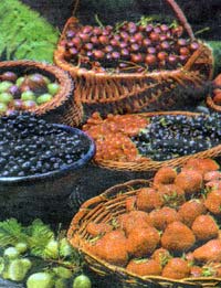 Athens News Walking through the Greek countryside in autumn. One is likely to come across a variety of berries, either growing wild or making up part of a long-abandoned fence.   Fruits like these must have been eaten by our earlier ancestors. At the Middle Pleistocene site of Choukoutien in China, Peking Man  the Far Eastern variety of Homo erectus  was obviously using blackberries (Celtis sinensis), known as ‘senoki’ in English. A layer of broken shells several inches thick was found there. Closer to home, at the Neolithic Swiss lake-site of Glastonbury, seeds of a large variety of berries were discovered, including (among others) the blackberry, common and dwarf elder berry, cornel cherry, dewberry, dog-rose berry, hawthorn berry, raspberry and strawberry. The strawberry was the rarest, the wayfaring tree berry the commonest. The genus Rubus comprises about 100 species, and eight of these account for the majority of Greece’s wild berries. Characteristically, each berry consists of a cluster of tinier ‘berries’. One (R tomentosus) is probably the hamaivatos of Theophrastus. Another (R fruticosus or ulmifolius) is the vatos par excellence of the ancient Greeks, the common thorny bush known as blackberry in English. This berry is indeed often black or very dark purple, and closely resembles another species of the same genus, the raspberry. The blackberry bush, in many varieties, grows wild but it is also cultivated widely almost everywhere in Europe, a good part of Asia, and in North Africa. In continental Greece the anatolicus variety is most common, while in Cyprus it is Sanctus. Other species include the Virginia raspberry (a native of North America) and the cloudberry, which grows wild in northwestern Europe. Other varieties from there include the dewberry, the raspberry and the famous framboise of the French, used for a variety of sweets and ice creams, its sweet and tart flavor often inciting our taste-buds to shameful excesses. These last two are also seen wild in mountainous areas of Greece, and the raspberry appears to be the vatos idaia of Dioskorides, who thought the plant was native to Phrygia. In North America blackberries are divided into those that grow on brambles, and those that burgeon on trailing vines. The latter are often called dewberries in the southern states. Between them, these two varieties constitute the major commercially exploited crops of wild berries. Because of the delicacy of berries, hybrids have been produced by crossing blackberries and raspberries, giving us such varieties as Loganberries, Marionberries, and Youngberries, and the large deep purple Boysenberries, developed by Rudolph Boysen of Napa, California in the 1920s. They are all autumn crops and appear to have been used medicinally by native Americans, reputedly as good “blood cleansers” and as aids against dysentery and common colds. Their leaves were also good for sore throats. All these are hardly old wives’ tales. Apart from their content of Vitamin C, iron, potassium etc, blackberries are an excellent source of bioflavonoids, anthocyanidins and other powerful natural antioxidants. They are also some of the tastiest and best side-effect-free medications against chronic degenerative diseases  the scourge of our society and age. So, if you have the opportunity, eat as many blackberries (and other berries mentioned above) as you can, preferably picked away from busy roads. The idea is to use the antioxidants of berries to prevent or slow down the degeneration of your cells, not to fight the heavy metals you may swallow together with the berries. Recipes Blackberry fluffy dessert  |