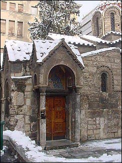 The next church is Agios Nikolaos Rangavas on Prytaniou Street. The most amusing way to reach it is by walking up Epimenidou, down Thespidos and then left onto Rangava, a mere path just under the Acropolis past a lovely garden. The church is by far the largest of the city's Byzantine jewels and dates from the same era as the monastery at Daphni, Kapnikarea and Agia Eleftheria next to the Metropolis, although a good percentage of it consists of later additions. Ancient blocks and columns are clearly visible next to the typically Byzantine brick decoration around the windows. This was the first church in Athens to acquire a belltower after the War of Independence (bells were forbidden in Ottoman territory) and the first to ring freedom in 1944. Now, if you go down Tripodon to Adrianou, Plaka's main shopping street, peek through the decrepit door at number 96 for a glimpse of the graceful arches fronting the Ottoman era house belonging to the Benizelos family. Given that St. Philothei was one of its members, you would think the Ministry of Culture would be more interested in restoring this elegant property. Inside the Agora, Agii Apostoli is the only church that has survived of the nine that once stood here. It was spared the wrecker's ball because of its distance from the heart of the Agora and its exceptional beauty. Outside the dome is supported on a typically Athenian high drum, inside it rests on ancient capitals, as does the altar. The narthex or vestibule contains plans and paintings showing the history of this thousand-year old church. Kapnikarea, an island in the middle of Emmou Street, is a familiar landmark. Look closely and you'll see the original 11th century building dedicated to the Virgin Mother received an addition in the 12th century: the chapel of St. Barbara, which is heavier and less graceful. Five different versions exist to explain the origin/meaning of its name. The word kapnos (tobacco or smoke) suggests it may have had something to do with a tobacco officials or an icon that survived fire and smoke. Some scholars think the name derives from kamouha, a valuable fabric made in the district, but no one will ever know for sure. Inside, there are frescoes done by Fotis Kontoglou in the 1950s, some beautifully carved modern church furniture, and some 19th century, Western-style paintings. These sentimental bland works predate a decision taken in the 1930s to have only two-dimensional traditional Byzantine-style icons and frescoes in Greek churches. After Kapnikarea's synthesis of pointed eaves and rounded arches, the "Small Metropolis" in the shadow of the Cathedral seems plain, but only from a distance. Instead of the traditional Byzantine brickwork, its walls are marble, decorated with a stunning collection of plaques from earlier buildings. An ancient Greek frieze depicts a calendar of Attic festivals and zodiac signs; below it flat, stylized pairs of birds and winged lions of Eastern origin are placed alongside a medieval cross being saluted by a Classical figure. Whoever assembled this amalgam of past art must have had great respect for its creators. The church was initially dedicated to the Virgin Gorgoepikoos  she who grants requests quickly  but after independence it was renamed Agia Eleftheria, which literally means St. Freedom. Who said there was a dearth of information? I've barely skimmed the surface and haven't even mentioned Agi Asomati at the bottom of Emou or Agi Theodon near Klathmonos Square. But Agios Ioannis on the corner of Evripdou and Koumoundourou streets beyond the Central Market deserves at least a line. This was a rural chapel and Ai Yannis had inherited the healing powers of Asklepios. Not much is left of the original structure except a Corinthian column rising above its makeshift roof. In the Middle Ages, the sick used to tie ribbons to it, hoping the saint would cure them, apparently, some people still do. The past, in all its manifestations, is always present in Greece, but the Byzantine era stopped short in Athens in 1205 after Western Catholic Crusaders parceled out the empire. That year, when the Franks severed Greece from its roots, can be considered the beginning of the real Dark Ages. As a former bishop exiled to Kea wrote, "You cannot look at Athens without tears."  |