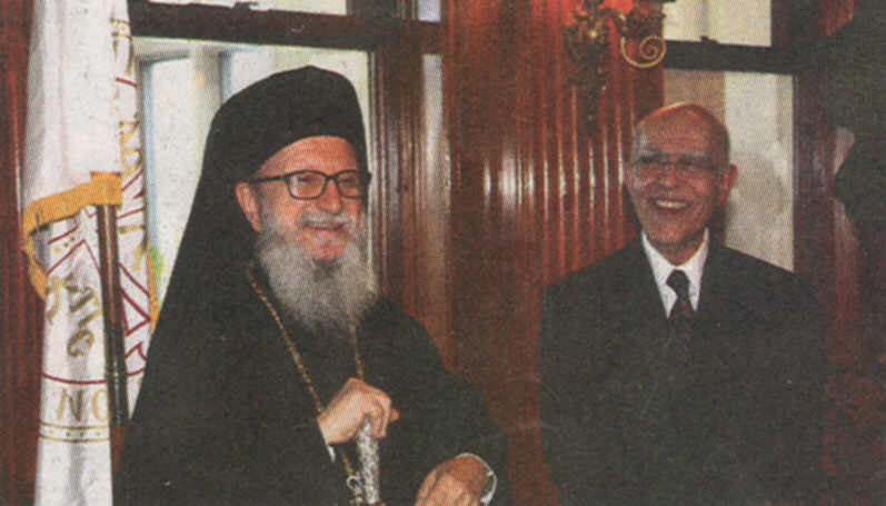 ![]() Archbishop Demetrios of America, left, and many others recently honored Dr. Lewis Patsavos, right, professor of canon law and author, at Hellenic College and Holy Cross School of Theology  |