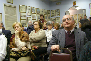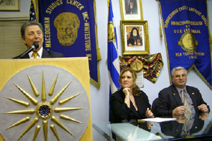 This unique lecture was co-sponsored by the Pan-Macedonian Federation. Over one hundred persons attended with standing room only. Dr. Arthur Flug, Director of the Holocaust Center at Queensborough Community College, was a guest speaker. Mrs. Nancy Biska, journalist at LaGuardia Community College, was lecture chairperson and moderator. Elias Neofytides of Macedonian Television and Eleni Daniels of Cosmo FM were among the prominent persons of the communications field. Outstanding leaders of the Greek-American community from Connecticut, New Jersey and New York attended.