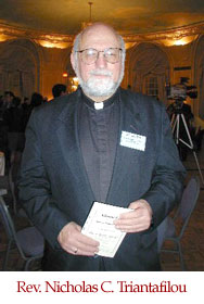 A dynamic gathering of professionals and entrepeneurs combined business and Hellenism at the eighth HBN Business Networking Symposium on March 14th. Guest speaker Rev. Nicholas C. Triantafilou  gave a heartfelt address that touched on values important to Greek-Americans as they negotiate the new millenium's confusions and challenges.  Father Triantafilou is President of Hellenic College/Holy Cross Theological School in Brookline, MA. He is a member of the Board of Directors of International Orthodox Christian Charities, and recently held the position of Director of the Boston Diocese Camp and Retreat Center. Father Triantafilou has served as priest in several communities, and also established an Orthodox School.  |