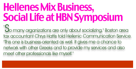 | A well-known figure throughout the U.S., he has directed, moderated, and hosted radio talk shows, and has appeared regularly on "Sunday Devotions, broadcast by ABC-TV in Houston. The address by Father Triantafilou was the culmination of a lively evening at the Fairmont Copley Plaza Hotel in downtown Boston. "So many organizations are only about socializing," Boston area tax accountant Chrys Hattis told Hellenic Communication Service. "This one is business-oriented as well. It gives me a chance to network with other Greeks and to provide my services and also meet other professionals like myself." Established in 1998, Hellenic Business Network has already conducted seven Business Symposia attracting over 250 Hellenes and Philhellenes from all professional backgrounds. The organization, which seeks to advance the professional interests of Hellenes, has established a Professional Development Series, a Cultural Series, a forum for fostering and promoting business interests, and an interactive website. Further information on HBN membership can be found at www.hbngroup.org. After the event, HBN board member Toula Seremetis declared the event a success. "On behalf of Hellenic Business Network," Seremetis said in a statement to Hellenic Communication Service, "I would like to sincerely thank members and friends for joining us to celebrate our 3rd Anniversary Symposium! Special thanks go out to the Symposium Sponsors and Committee members as this event would not have been possible without their help and continuous support."  |