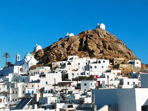 ![]() Panagia Gremiotissa's Church is perched on the highest rock of Ios' Hora  |