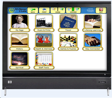 Consider the common way that a family interacts with the elderly, be it in the patient’s home or in a residential care facility. The family typically gathers around the elderly person and simply talks. The topic may be what’s currently going on with family members, neighborhood gossip, perhaps politics, and the like. Often a family member will bring along a traditional photo album with items such as pictures, newspaper clippings, memos, even dried flowers or other items that spark memories in the elderly patient. Home videos and music are popular as well but the elderly really enjoy the human interaction. Let us consider various technical vehicles for duplicating this kind of experience. Figures 1 5 show representative samples of commercially-available technologies that can be used for social interaction in order of increasing technical challenge. |