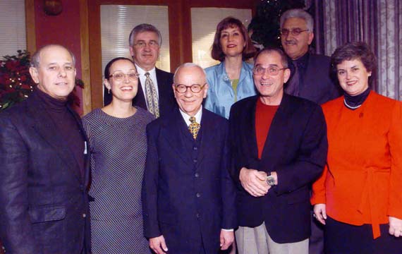 (Back row, left to right) Bill Gatzoulis, President of Paideia of New Hampshire; Penelope Salmons; Dino Siotis, Director of the Press Office of the Consulate General of Greece in Boston and Editor of MondoGreco literary magazine; (front row, left to right) Christos and Mary Papoutsy, series benefactors and members of the advisory board; Dr. John C. Rouman, Professor Emeritus of the Classics Department of the University of New Hampshire; Dr. Stanley Lombardo, guest performer and lecturer; Prof. Nina Gatzoulis of the Modern Greek Program of the University of New Hampshire.