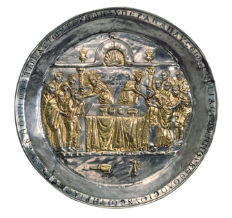 "Byzantium 330-1453" showcases the Antioch Chalice, 500–550AD, on loan from the Metropolitan Museum of Art, New York. After its discovery in c.1911, the silver gilt artefact was believed to have been the Holy Grail, the cup used by Christ at the Last Supper. Major works from the Treasury of San Marco, Venice have been loaned to the Royal Academy including the ornate Chalice of the Patriarchs, c. 10th–11th century. Other highlights include a two-sided icon of Virgin Hodegetria (obverse) and the Man of Sorrows (reverse), 12th century, from the Byzantine Museum, Kastoria, an impressive 10–11th century imperial ivory casket from Troyes cathedral depicting hunting scenes and riders and the Homilies of Monk James Kokkinobaphos, a manuscript from 1100–1150AD on loan from the Bibliotheque Nationale de France, Paris. "Byzantium 330–1453" continues the RA’s tradition of hosting outstanding exhibitions exploring world cultures, which have included "Africa: The Art of a Continent" (1995), "Aztecs" (2002), "Turks: A Journey of a Thousand Years" (2005) and "China: The Three Emperors, 1662–1795" (2006). (Image at left: Unknown artist, The Riha paten, 565–578. Silver with gilding and niello, Diameter 35 cm. Byzantine Collection, Dumbarton Oaks, Washington, DC. Photo © Dumbarton Oaks, Byzantine Collection, Washington, DC.)  |
