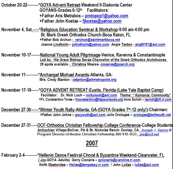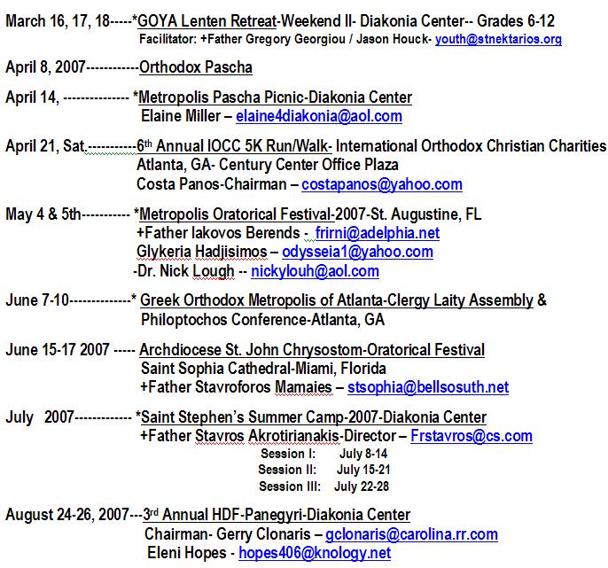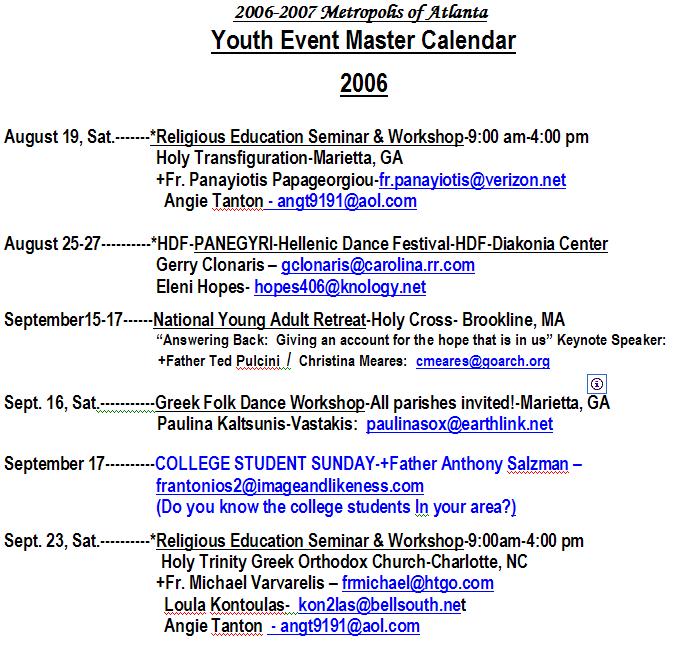 HCS readers can view other articles about or by the Greek Orthodox Metropolis of Atlanta in our extensive, permanent archives at the URL http://www.helleniccomserve.com/archivemetropolisatlanta.html. For more information about the Atlanta Metropolis or its Department of Youth and Young Adult Ministries, contact Michelle Cassimus, Youth Coordinator at 404-634-9345 or youth@atlmetropolis.org. See also the website of the Metropolis at the URL http://www.atlanta.goarch.org. The Metropolis falls under the ecclesiastical jurisdiction of the Greek Orthodox Archdiocese of America (http://www.goarch.org) and the Ecumenical Patriarchate of the Orthodox Church at Constantinople (http://www.patriarchate.org).  |