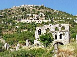 | Troubled years The castle of Mystras was founded in 1249 by Geoffroi de Villehardouin on an acropolis leading up to the slopes of Mount Taygetus, 6km northwest of Ancient Sparta. Those were the difficult years following Constantinople's fall to the Franks in 1204, a disaster that led to the partition of Romania (as the Byzantine Empire was called by its inhabitants). The de Villehardouins gained rule over much of the Peloponnese, founding the principality of Achaia. To establish their governance over the unruly locals, they dotted the Peloponnese with forts. Anarchy reigned in southern Greece, as Greeks and Franks battled for dominion, establishing principalities against a background of invasions by Slavs and Albanians. The incessant ethnic strife would weaken Romania, heralding the final downfall to the Turks. De ViIlehardouin's castle was erected on a stronghold dominating the plain of Sparta. The rocky hill was known as Myzethras, a name with uncertain origins.  |