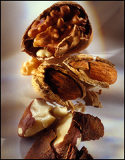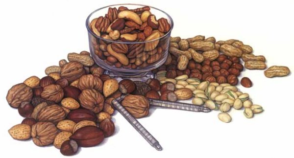 In Sweets The use of nuts in Greek pastry making is not limited to the well-known fillo dessert baklava. Since time immemorial, Greeks have enjoyed the intoxicating combination of nuts and honey, especially walnuts and honey. Today, that combination is still popular and so high in calories and energy, it is thought to be an aphrodisiac! In ancient Greece, sweetmeats that must have resembled the nut brittles of today seem to have abounded. Today, nut-based sweets include a whole bevy of preparations from all over the country. In fact, even the commonplace baklava comes in myriad versions, some prepared with almonds, some with walnuts, some with pistachios, some with pine nuts, and some with combinations of all the above. Baklava is generally prepared in whole sheet pans. The distinguishing regional feature, besides the variety of nuts used, is the heightas determined by the number of fillo layers and the quantity of nuts used in the filling. Desserts similar to baklava, that is, fillo desserts that call for nuts, include a whole range of shapes, from cylindrical finger-sized logs filled with nuts to little coils in which the center is speckled with nuts, to something akin to an open beggar’s purse, again with nuts in the center.