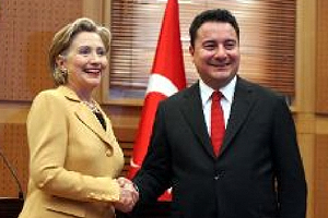 ![]() Secretary of State Hillary Clinton, left, and Turkish Foreign Minister Ali Babacan upon her arrival for a meeting in Ankara this past March 7. President Obama is scheduled to visit Turkey next month  |