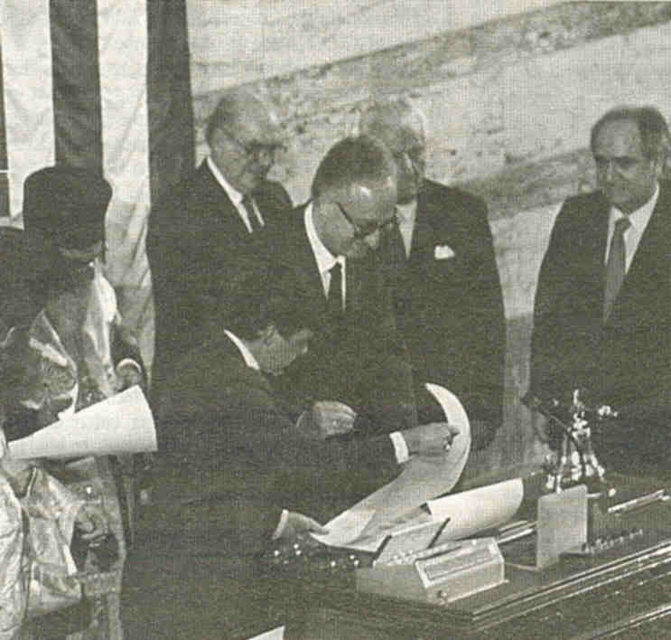 30 March 1985: Twenty years before the current conservative prime minister, Costas Karamanlis, endorsed the election of a president from the ranks of the opposition Pasok party, the socialist prime minister Andreas Papandreau did exactly the opposite. Much to the surprise of even his closest confidants, Papandreou decided on 9 March 1985 to withdraw his ruling party's support for a second term of Constantine Karamanlis as president of the republic, instead backing the noted jurist and Supreme Court prosecutor, Christos Sartzetakis, for the job of head of state. Sartzetakis (centre) is seen taking the oath of office on 30 March 1985, with  |