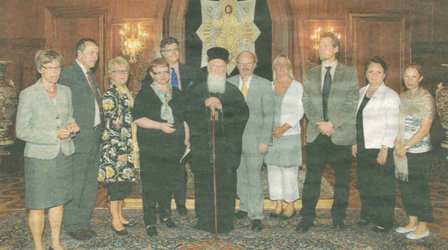 ![]() Ecumenical Patriarch Bartholomew with members of the Swedish parliment's Culture Committee delegation on its fact-finding visit.  |