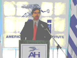 WASHINGTON, DC  On April 15, 2005, AHI hosted a Noon Forum at Hellenic House with Dr. Plutarchos Sakellaris, Chairman of the Council of Economic Advisers at the Greek Ministry of Economy and Finance, and Professor in the Department of Economics at the Athens University of Economics and Business. The discussion was on "Current Challenges for the Greek Economy." In discussing the current challenges facing the Greek economy, Dr. Sakellaris said the Greek economy performed well in 2004 with spending for the Olympics relying heavily on government expenditure. He said growth would slow but remain robust. Dr. Sakellaris pointed out that the economy is now in "the shift from public funds and expenditures to the right business environment for the private sector to step in and pick-up the slack." He sees this happening through corporate tax cuts, new investment law, and private sector funds to substitute for public funds. Dr. Sakellaris discussed the structural measures to improve public sector efficiency which include: "the establishment of an independent body of fiscal inspectors; internal auditing services in every Ministry, local authorities, and public entities with a budget exceeding Euro3 million; the establishment of a new framework for the operation of public enterprises and entities aimed at strict implementation of business plans, wage moderation, and control of borrowing requirements, restricted to investment needs; and technical assistance from the IMF on tax administration and expenditure control." The policy measures aimed at promoting growth include: "gradual reduction of tax burden, especially taxes affecting savings and investment; the priority goal of fiscal policy: stimulate investment in production of higher value added goods and services; new legislation aiming at cutting red tape and reducing time and cost required for business start-ups; investment incentive laws; privatization; increasing investment in infrastructure through public-private partnerships; accelerating liberalization in network industries; and financial market reforms." In conclusion, Dr. Sakellaris said in reference to making room for private sector-led growth that "fiscal discipline is critical to the success of our private sector led growth strategy, liberalization will stimulate private sector investment and drive growth through this period of fiscal consolidation, and economic liberalization will also encourage the development of a more outward-oriented economy, better able to profit from Eurozone membership and the improving conditions in neighboring countries." Dr. Plutarchos Sakellaris completed his undergraduate studies at Brandeis University and his doctoral studies at Yale University. He taught for eleven years at the University of Maryland. He has also taught at the University of Ioannina, Central European University, University of Munich and Yale University. He has presented seminars at numerous universities and international conferences. His previous professional experiences include: Visiting Expert at the European Central Bank (ECB), Staff Economist and Consultant at the Federal Reserve Board, Research Associate at the U.S. Bureau of the Census, and Conference Organizer in association with the ECB, the Center of Economic Policy Research, London and Athens Laboratory of Economic Policy Research. His research addresses issues on monetary policy, productivity and sources of growth, firm investment in physical capital, the industrial sector and education. His papers have been published in books and in international journals, such as: American Economic Review, Journal of Monetary Economics, Review of Economics and Statistics, International Economic Review and Oxford Economic Papers. For information about AHI, see other articles and press releases from AHI at the online archives for HCS or visit the organization's website at http://www.ahiworld.org.  |