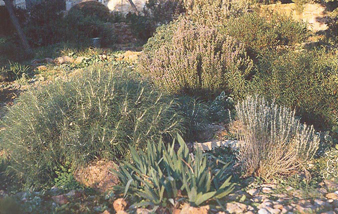 A water shortage will probably become evident long before a serious decline in quality. However, purity will undoubtedly become critical for gardeners. Plentiful good water is, after all, a basic ingredient of a healthy garden, That's why it's so important to make the best use of available water by working in harmony with the climate and the local resources. Heidi Gildemeister may have coined the phrase "waterwise gardening" in her book Mediterranean Gardening: A Waterwise Approach. She is certainly a pioneer of the careful use of water. During the past 25 years, she has sculpted a distinctive and natural garden out of a maquis landscape, the dense community of evergreen trees and shrubs typical of the Meditenranean Basin. Experimenting with many water-saving techniques, she proves that a considered choice of plants - as well as careful siting, planting and mulching - cuts down on consumption.  |