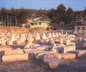 ![]() Ancient Roman agora with Mt. Pagus in background  |