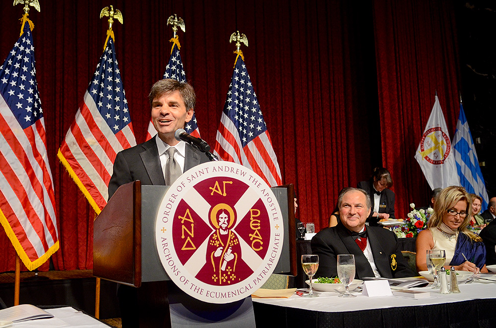 ![]() Archon George Stephanopoulos, ABC Chief Political Correspondent and Co-Anchor of Good Morning America, was Master of Ceremonies for the Athenagoras Human Rights Award. Photos by J. Mindala)  |