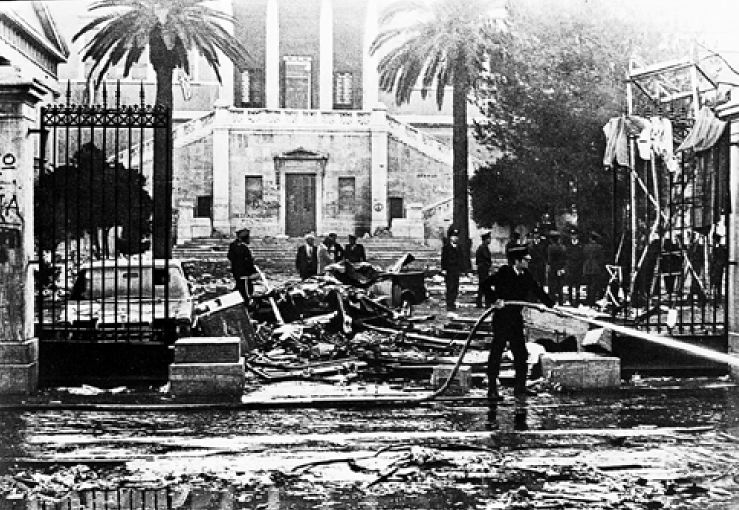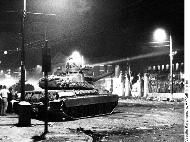 ![]() An army tank prepares to roll into Athens Polytechnic on November 17, 1973. The terrorist group November 17 takes its name from this event  |