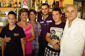 | If we linger long enough, we can watch the Kalogerellis family cook and serve for a tour bus that stops late in the morning a couple times each week. With smooth efficiency, the entire family--sons and nephews, too--appears instantly to begin taking orders and setting tables. In no time at all, food and beverages appear on the tables, and the travelers are eating a light meal or snack. A couple of times we struck up conversation with one of the tour guides, Irene Nerantzi, (irenanzi@yahoo.gr) a gregarious lady whose multilingual expertise has kept her busy in the travel industry.  She concurred with our assessment of Rena's and added that the place was always spotless, another reason for stopping at Vatoussa with visitors. (For more information about the village Vatoussa and surrounding area, visit the URL's http://www.lesvos.com/vatousa/index.html and  Matt Barrett's Lesvos travel blog at http://www.lesvos.com/ .)  |
