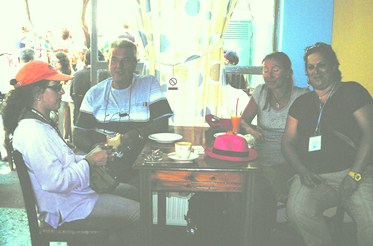 ![]() Tour Guide Irene Nerantzi (right), with island visitors  |