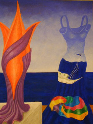 | Fanciful touches -- earthenware jugs dressed up in blouses and shirts, dancing hats, and floating dresses -- recall Magritte. But Tsoris admits no pretensions. The purpose of his art, he says with enthusiasm, is to bring pleasure. "My art is about the moment when I'm making it, the feeling, the action," Tsoris says. "The happiness I get when I create comes back to me through the pleasure of other people. This pleasure gives me power to continue." Apostolos Tsoris was born in Agrino, Greece, and studied in Piraeus. A fashion designer for 20 years, he now lives in New York City, revelling in the chance to do what he loves best. "For a long time, I was far away from it," he says.  |