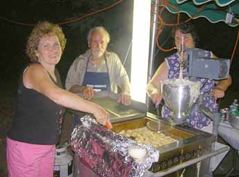 Ninety-seven degree temperatures and thunder storms were not obstacles in enjoying the 2006 Transfiguration of Christ Church Festival on Breakwater Road in Mattituck, New York. Record breaking crowds of persons attended the three day Festival from Friday, July 28th through Sunday, July 30th. The major attraction was the home made cuisine for reasonable prices. The Greek pastries were a magnet to many East End residents who wanted loucoumades (fried honey balls), baklava, kataifi (shredded wheat baklava) kourabiedes (shortbread cookies in confectioners sugar), koulourakia (butter cookies) and melomacarona (honey dipped cookies). Everyone left happy, wanting to return again the following year.  |