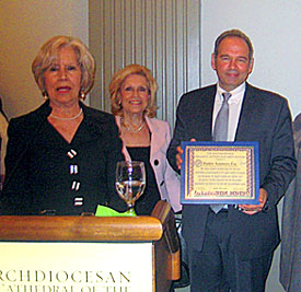 Adriana Filiotis (left) and President Vasiliki Filiotis presenting award to Demetrios Kalamaras, Esq.  |