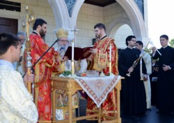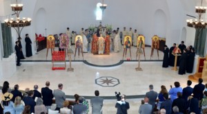 | Thirty-seven years later, the East End had the opportunity of seeing a second Thyranixia (The Opening of the Doors) in a church with a church that has features of Agia Sophia in Constantinople (Istanbul). Vespers on Tuesday evening, August 14th, were held in the Johnides Cultural Center. The priests who participated in the liturgy included: Rev. Vlahos; Rev. Moraitis; Rev. Strouzas; Rev. Joseph Fester;Archpriest Sergei Glagolev; Rev. John Codis; Rev. Alexander Karloutsos; Rev. Constantine Lazerakis and the Sisters of the All Saints Monastery. |