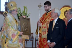 The doors opened a unique Byzantine church with a dome. Never did I expect to see in rural America a church meticulous in detail to a Byzantine design. I noticed several green columns, such as those in Hagia Sophia in Constantinople. Sitting with us wereKarineBakhoum, PascalRiffaud and their daughter Isabelle, with son Jean Baptiste serving in the altar. “This new structure and Cathedral is so beautiful it takes our breath away,” said Ms. Bakhoum, a Coptic Christian and immigrant from Egypt. “I look forward to many special moments here to express our faith and to see my children married here someday.” Countless prominent persons in society attended. For more information, visit www.kimisishamptons.org. Many from Europe have never seen a Thyranixia because the churches are one thousand to fifteen hundred years old. The community presented His Eminence with a sculpture in the frame of an icon created by Paul Maus. His Eminence gave the community the gift of an Epitafios of the Dormition of the Virgin Mary. A Luncheon followed at Nammos, hosted by Tom Makkos and Family. Parish Council President Peter Nikiteas gave a moving speech at the conclusion of the Luncheon. “All of this would not have been possible without the vision and persistence of the original founders. They took many difficult steps. Our leaders had the vision to take it even further. Now, you and many others have taken this dream and turned it into a new reality. This new sanctuary will serve our children and their children's children.” President Nikiteas explained “we are a family..We work together. We argue with one another. But in the end, we make things happen with the help and guidance Fr. Alex and Fr. Constantine. I feel as blessed as should you. We have come this far. But there is much more to do. I know we can achieve our goals if we work together and reach deep down inside ourselves to do our best. I thank you for being my family. Most of all I want to thank God for guiding us to this special day.”  |
