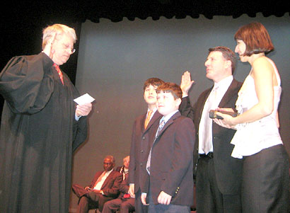 ![]() City Council Member Mark Weprin sworn into office by the Hon. Nicholas Garaufis as his wife Jennifer and sons look on.  |