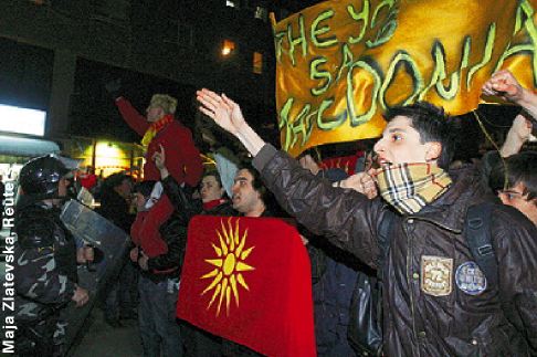 Skopje on February 19. A few hundred youths demonstrated in front of the