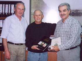 ![]() Mr. Christos Stavrakoglou (left) and Mr. Christos Papoutsy (center) meet with then mayor of the demos, Mr. Polydoros Abatzis  |