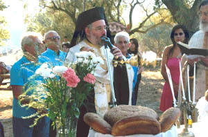 | (HCS)--Rye Beach, NH--The culmination of nearly ten years of efforts to revitalize a small mountainside village in Lesvos, the opening of the St. Nicholas-Christos and Mary Papoutsy Park and Amphitheater in August 2008 marked a significant point in the recent history of Vatoussa. For three days dignitaries, guests and villagers celebrated the inauguration of the park. Hundreds filled the park and surrounded its tiny chapel to hearVesper services and attend the blessing of the grounds by His Eminenece Metropolitan Chrysostomos of Mithymna. |