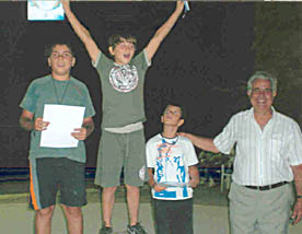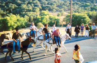 Christos and Mary Papoutsy presented awards of appreciation to Christos Stavrakoglou, Avel Spanellis, Panagiotis Malamellis, and Irini Kalontzis for their decade of steadfast service to the Papoutsy foundation and to the development of the public park. Mytilenian choral voices led by Lia Kefala concluded Saturday's program with a stirring concert of traditional Greek songs. The second day of festivities began late in the afternoon with a revival of the old popular Vatoussan festival called "Fton." Professor Yiannis Katernellis was instrumental in organizing the contests, consisting of donkey and horse races, foot races, and stone-throwing competitions. Local police cordoned off the main road from the village to the park, a distance of about 1,000 meters, for the races, with rescue personnel on hand to offer first-aid if needed. Villagers cheered all contestants, amid much merriment. To the delight of local children, a colt running alongside its mother, shot ahead during the horse races to take first place in one heat. Organizers separated participants in the foot races according to age and gender, with a large and fleet-footed contingent of young girls competing. Entrants in the stone-throwing competition used a prescribed format for hurling a round stone of about 5 pounds, much like modern shot-put technique. At the conclusion of the contests, a selection of dignitaries presented the top three winners in each category with certificates, and Mr. Vangelis Gdondelis, a scholar and historian, lectured on the history of this local festival and its counterparts throughout Lesvos. [Click here for Greek version of lecture.] On the final day of the inauguration, the Christos and Mary Papoutsy Foundation for the Revitalization of Vatoussa and Omospondia Lesviakon Syllogon Athinon (OLSA, the Council of Lesviot Organizations in Athens) co-sponsored a forum for members of the council in the meeting hall of Vatoussa's Metamorphosis organization. Representatives from the organizations came from as far away as Thessalonika and Athens to participate. Speakers and attendees discussed and raised a number of important issues affecting long-term strategies and involvement in such organizations. Following the daylong discussions sponsors held a reception for the guests and participants.  |